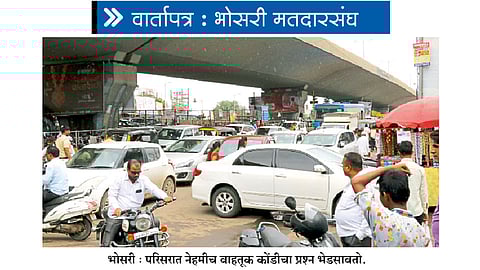 काही वर्षांपूर्वी भोसरी येथील वाहतूक कोंडी फोडण्यासाठी नाशिक महामार्गावर उड्डाण पूल बांधण्यात आला; पण गेल्या काही वर्षांत येथील लोकसंख्या वाढली, पर्यायाने वाहनांची संख्याही वाढली आहे. सकाळी आणि संध्याकाळी वाहतूक कोंडीचा मोठा प्रश्न येथे निर्माण होतो. उड्डाण पुलाखाली मजूर अड्डा आहे, त्यांच्यासाठी व्यवस्था नसल्याने व अवैध वाहतूक करणाऱ्या गाड्या रस्त्यात आडव्यातिडव्या लागल्याने वाहतूक कोंडी होते. ही समस्या सुटावी, वाहनांना शिस्त लागावी, मजुरांना थांबण्यासाठी व्यवस्था करावी, अशी येथील मतदारांची अपेक्षा आहे; पण गेल्या पाच वर्षांत ही अपेक्षा पूर्ण झालेली नाही. या पुलाखाली आता अर्बन स्ट्रीट डेव्हलपमेंटच्या माध्यमातून सुशोभीकरणाचे गाजर दाखवत आहेत.