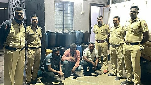 पोलिस निरीक्षक सचिन पाटील यांना अवैध दारु वाहतुकी बाबत मिळालेल्या माहीती नुसार सहाय्यक पोलिस निरीक्षक मनोजकुमार नवसरे यांच्यासह सहाय्यक फौजदार कृष्णा कदम,पोलिस हवालदार जगदीश शिरसाट,शिपाई योगेश राजीवडे हे पोलिस पथक रात्रीची गस्त घालत असताना सारोळा ता.भोर गावच्या हद्दीत बस स्टाँप जवळ पहाटे अडीच वाजण्याच्या सुमारास विर सारोळा रस्त्यावरुन आलेल्या बोलेरो जीप क्रमांक एम एच 12 आर एन 9743 ची तपासणी केली असता जीप मध्ये मागील बाजुस प्लास्टिकच्या 35 लिटर मापाच्या 40 कँन मध्ये सुमारे 1 हजार 400 लिटर गावठी दारु असल्याचे निष्पन्न झाले या बाबत पोलिसांनी कारवाई करत जीप चालक राजु लक्ष्मण जानकर वय 22 रा.चिव्हेवाडी ता.पुरंदर,महेंद्र राजेंद्र कुंभार वय 31 रा.शिरवळ शेखमेरवाडी ता.खंडाळा जि.सातारा,व बापु धोंडिबा कोकरे वय 32 रा. कांबरे ता.भोर यांना ताब्यात घेण्यात आले आहे.