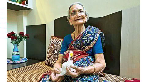 प्रज्ञाताई म्हणाल्या, ‘‘आमच्या आईंना एकदा काही पाहून ते स्वतः करताना एवढं सगळं लक्षात राहतं, हे मोठं वरदान आहे. रांगोळी वाटावी, अशा रचनाही त्या मोत्यांपासून तयार करतात. क्रोशा आणि लोकरीच्या विणकामातूनही त्या वस्तू बनवतात.’’