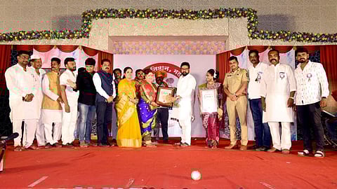 नारायणगाव - मराठी बाणा प्रतिष्ठानच्या वतीने लावणीसम्राज्ञी सुरेखा पुणेकर व मेघा घाडगे यांना विठाबाई नारायणगाव जीवन गौरव पुरस्कार प्रदान करून सन्मानित करण्यात आले. येथील ग्रामदैवत श्री मुक्ताबाई देवी, श्री काळोबा देवस्थान यात्रा उत्सव व मराठी बाणा प्रतिष्ठानचा वर्धापन दिन या निमित्ताने येथील श्री मुक्ताबाई समाज मंदिर सभागृहात पुरस्कार वितरण व लावणी महोत्सव कार्यक्रमाचे आयोजन करण्यात आले होते. या वेळी आमदार अतुल बेनके यांच्या हस्ते लावणीसम्राज्ञी सुरेखा पुणेकर व मेघा घाडगे यांना पुरस्कार प्रदान करण्यात आला. कार्यक्रमास उपविभागीय पोलीस अधिकारी मंदार जवळे, सहायक पोलीस निरीक्षक पृथ्वीराज ताटे, युवा नेते सुजित खैरे, सूरज वाजगे, गणेश वाजगे, जयेश कोकणे, मराठी बाणा प्रतिष्ठानचे अध्यक्ष रमेश मेहेत्रे, संचालक राजेंद्र कोल्हे, अंजली खैरे, ज्योती संते आदी उपस्थित होते.