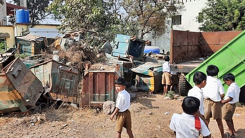 मैदानावर झाडेझुडपे वाढली आहेत. पालिकेकडे गेटच्या चाव्या आहेत. कर्मचारी वेळेवर येत नसल्याने गेट उघडले जात नाही. त्यावेळी पोलीस चौकीच्या आवारातून आडमार्गाने धोकादायकपणे शाळेत यावे लागते. पालिका अधिकाऱ्यांना वारंवार सांगूनही लक्ष दिले जात नाही.'