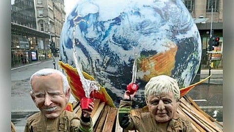 पंतप्रधान नरेंद्र मोदी, ब्रिटनचे पंतप्रधान बोरिस जॉन्सन व दोघांनी मिळून अन्य ऐंशी राष्ट्रप्रमुखांबरोबर ‘वन सन, वन वर्ल्ड, वन ग्रीड’ उपक्रम जाहीर केला. नेहमीचा दिखाऊपणा म्हणजे आपण साधे छपरावरील सौर फलक उभे करून विकेंद्रित ऊर्जा मिळवण्यात चांगलेच मागे आहोत. त्याबाबत काही प्रोत्साहन योजना वगैरेपेक्षा विद्यमान सत्ताधीशांची समारंभी गोष्टींची आवड इथेही लपत नाही. जंगलतोड थांबवणे करारात भारताचा सहभाग नसणे: २०३० पर्यंत संपूर्ण जंगलतोड थांबण्याच्या महत्त्वाकांक्षी करारातही भारताचे सहभागी न होणे,त्याचवेळी देशांतर्गत जंगल संरक्षण कायद्यात टोणग्या राक्षसी कंपन्यांच्या सोयीने विनाशकारी बदल घडवून आणण्याचा घाट घतला जात असणे,ग्रामसभा,आदिवासी, जंगल निवासी ह्यांचा आवाज पूर्णपणे दाबला जाणे, या गोष्टींमधील समान सूत्र कॉर्पोरेट मित्रांसाठी अपरिवर्तनीय वन-विनाश हेच आहे.