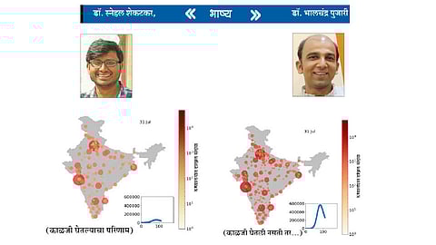 आमच्याप्रमाणेच देशातील इतर संशोधकांनी "कोरोना'शी कसा लढा देता येईल, याबाबत संशोधन सुरू केले होते. यात विषाणूचे जैवशास्त्रीय विश्लेषण, विषाणूच्या प्रसाराबद्दलचा डेटा आणि प्रसाराबद्दलची गणितीय प्रतिमाने तयार करणे आदी गोष्टींचा समावेश आहे. आता सर्व संशोधकांनी एकत्र येत "इंडियन सायंटिस्ट्स रिस्पॉन्स टू कोविड' हा चमू तयार केला आहे. आम्ही गणितीय प्रतिमानाचे काम केलेले असल्यामुळे याबद्दलच्या पुढच्या कामाची जबाबदारी सावित्रीबाई फुले पुणे विद्यापीठाकडे सोपवण्यात आली आहे. यातील सध्या चालू असलेले मोठे काम म्हणजे लॉकडाउन आणि "कोरोना'च्या तपासण्या यांचा अभ्यास. यातून निघालेला महत्त्वाचा निष्कर्ष म्हणजे मोठ्या प्रमाणावर चाचण्या करून बाधितांचा शोध घेऊन त्यांना क्वारंटाईन करणे हे लॉकडाउनइतकेच गरजेचे आहे. लॉकडाउनमुळे एकमेकांशी संपर्क कमी होतो आणि त्यामुळे रुग्ण निरोगी व्यक्तींना संसर्ग करण्याची शक्यता कमी होते. दुसरीकडे आपण तपासण्या करून रुग्णांना शोधू शकलो, तर त्यांना क्वारंटाईन केल्याने प्रसार मोठ्या प्रमाणावर कमी होतो आणि लॉकडाउन बराच कमी करता येतो. लॉकडाउन आणि चाचण्या केल्या किंवा केल्या नाहीत, याचा गणितीय प्रतिमानातून दिसलेला परिणाम सोबतचा चित्रात दाखवला आहे. काळजी घेतली नसती, तर लाखो लोकांना विषाणूचा प्रादुर्भाव झाला असता. (गडद रंग असलेला आलेख). याउलट लॉकडाउन, विलगीकरण आणि चाचण्या यांमुळे हीच संख्या आपण हाताबाहेर जाण्यापासून वाचवू शकतो. (फिका रंग असलेला आलेख). त्यामुळे आता सरकार मोठ्या प्रमाणावर तपासण्या वाढवेल आणि "कोरोना'चा प्रादुर्भाव थांबेल अशी आशा करूया.