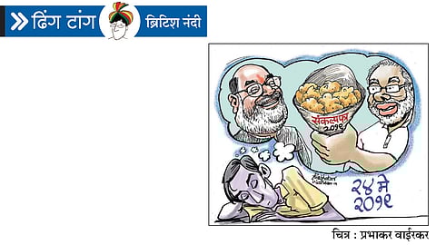मोटाभाई : (दिलासा देत) सांगितला!! पण अडवानीजी म्हणत होते, की ‘‘संकल्पपत्र वगैरह सब ठीकही है, लेकिन चूंटणीनंतर काही उल्टासुल्टा झ्याला तर अमदावादमध्ये दुकानाच्या एक गाळा घेऊन ठेवा! आपसे पकोडे खरीदना भी तो किसी का संकल्प हो सकता है!!’’