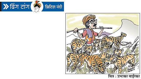 उधोजीसाहेब : (संतापाने) त्यांचं काहीही ऐकू नकोस! ते वाघांच्या संख्येत फायबरचे वाघही मोजतात!!