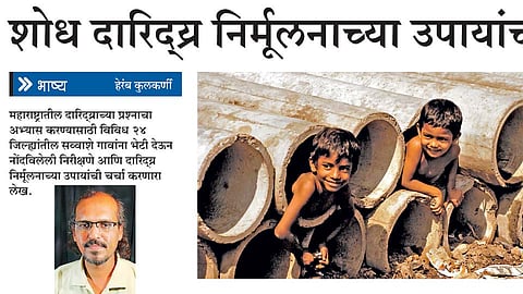 महाराष्ट्रातील दारिद्य्राची स्थिती नेमकी काय आहे, याचा अभ्यास करण्यासाठी मी 24 जिल्ह्यांतील 125 गावांना भेटी देऊन पाहणी केली. या 24 जिल्ह्यांत विदर्भ मराठवाड्यातील सर्व जिल्हे, रायगड, पालघर, नंदुरबार असे महाराष्ट्राचे सर्वच विभाग निवडले. लोक काय खातात, रोजगाराची, शेतीची स्थिती काय? शिक्षण आणि आरोग्याची परवड, असंघटित मजुरांचे अमानुष जगणे, दलित भटके विमुक्तांचे जगणे, शेतकरी आत्महत्या, दारूचा प्रश्न, महिलांची स्थिती, अशा अनेक मुद्द्यांवर या अभ्यास अहवालात तपशीलवार निरीक्षणे नोंदवली आहेत. प्रत्येक जिल्ह्यातील गरीब तालुके निवडून त्या तालुक्यातील 5 गरीब गावे निवडून त्यातील गरीब लोकांशी बोलून तळातले प्रश्न समजून घेतले. यातून गरीब महाराष्ट्राचे वास्तव लक्षात आले.