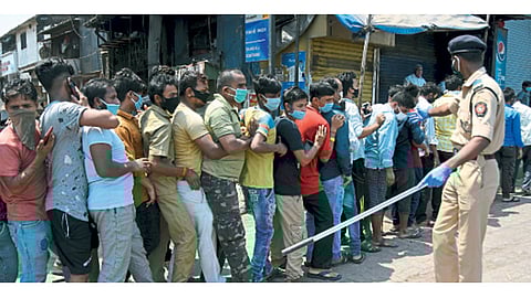 या शहरात एका कॉलनीतल्या क्वारंटाईनमधील लोकांकडे इतक्या तिटकाऱ्यानं पाहिलं जात असेल, तर डोक्यावर छप्पर नसलेल्यांची काय अवस्था असेल? स्थलांतरित मजुरांच्या एका गटातील एकजण पॉझिटिव्ह झाल्याने इतरांना ग्रॅंट रोडला क्वारंटाईन करण्यात आलं. तब्बल पंधरा दिवस या मजुरांना साधा चहादेखील मिळाला नाही. दोन्ही वेळच्या जेवणात पुलाव किंवा खिचडी देण्यात येत होती. तिथला एक मजूर म्हणाला, ‘‘हम लोग बिल्डिंग पे काम करनेवाले मजदूर हे. सिर्फ चावल खाके जिंदा कैसे रहेंगे? पीने के लिए पानी भी नही मिल रहा है... भूखाही मरना है, तो अपने गाँव, घर जाके मरेंगे’’ क्वारंटाईनमधून बाहेर पडल्यानंतरही त्यांना मेडिकल सर्टिफिकेट मिळवण्यासाठी धडपडावं लागतंय. इथल्या क्वारंटाईनमधून बाहेर पडूनही आपल्या राज्यात गेल्यावर तिथल्या चौदा दिवसांच्या क्वारंटाईनलाही या स्थलांतरितांना सामोरं जायचं आहे. राज्यातून बाहेर पडण्यासाठी मेडिकल सर्टिफिकेटची गरज आहे, त्यासाठी धारावीसारख्या झोपडपट्टीत रांगा लागल्यात. झोपडपट्टीतील क्वारंटाईनची अवस्था यापेक्षा भयानक आहे. चतकोर छपराखाली जमिनीवर वेटोळं घालून संपूर्ण कुटुंब दिवसभर पडून असतं. मोबाईल चार्ज करण्यासाठी घरातल्या एकमेव थ्री पीनवर किमान चौघांना मोबाईल चार्ज करायचा असतो. जेमतेम आठ - दहा फूट उंचीच्या झोपडीत दिवसभर आडवं पडून, आंबलेल्या शरीराला जागतं ठेवण्यासाठी मोबाईल, टीव्ही वेळ घालण्यासाठी आवश्यक ठरतो. डोक्याला, शरीराला काम नाही आणि पोटाला अन्न नाही, अशी परिस्थिती कंटेन्मेंटमधील झोपडपट्ट्यांची आहे.