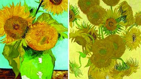 काही छोटेमोठे फरक सोडले तर सर्व कॅन्व्हासमधील रचना साधारण सारखीच. ही सीरिज व्हॅन गॉगच्या नावाशी जणू एकरूप झाली - एक समीकरणासारखी. चित्रकार मित्रासाठी सुरू केलेली ही मालिका स्वतः व्हॅन गॉगला अतिशय प्रिय होती. यातील तेजस्वी क्रोम यलो आकर्षक रंग आहे. या चित्रांतील रंग जणू त्या सूर्यफुलांच्या आयुष्याचे प्रतिबिंबच आहेत. टवटवीत सूर्यफुलांचा तेजस्वी पिवळा, तर काही मलूल झालेल्यांचा ब्राऊन. सर्व जीवनाच्या छटाच जणू. या चित्रमालिकेचा काळ हा व्हॅन गॉगच्या आयुष्यातला आनंदी काळ होता, हे त्या पिवळ्या रंगांच्या उपयोगातून स्पष्ट दिसते. यात अनेक तंत्रांचा वापरही दिसतो - पॉईन्टलिस्ट ते जाड रंगलेपन. त्या काळातील विशिष्ट रंग-लेपनाच्या पद्धतीला छेद दिल्याचेही दिसते.ही चित्र वास्तवाचे हुबेहूब चित्रण नसून त्यात चित्रकाराची अभिव्यक्ती प्रामुख्याने दिसते. एकाच चित्रात एकाच रंगाचा - पिवळा - विविध छटांमध्ये वापर यशस्वी ठरवून चित्रांतून जणू प्रकाश परावर्तीत होतो. प्रत्येक चित्र कसे उठून दिसते, एकसारखी रचना असूनही ॲम्स्टरडॅमनंतरही मालिका बघायला मुद्दाम लंडनला दौरा नेला - नॅशनल गॅलेरीत. मोठ्या खेळण्याच्या दुकानातल्या एका लहान मुलासारखी अवस्था झाली आमची. काय काय बघावं? इथला मुक्काम वाढवावाच लागला!
