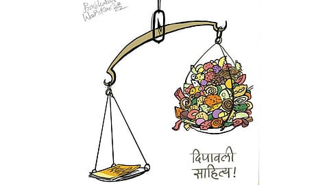मराठी साहित्याचंही तसंच काहीसं झालं आहे. यंदा साडेचारशेच्या आसपास दिवाळी अंक प्रसिद्ध झाल्याचा एफ़आयआर (फर्स्ट इन्फर्मेशन रिपोर्ट) नोंदवला गेला आहे. दोन वर्षं कोरोनात गेली. दिवाळी अंकांच्या निर्मात्यांनी जाहिरातदारांना फोन केले. जाहिरातदारांनी कसनुसे हसून फोन ठेवले किंवा उचललेच नाहीत! अशी दोन वर्षं गेली. यंदाच्या दिवाळीत सगळ्यांनीच जोर धरला. लेखक आणि कवी मंडळीही दबा धरुन बसली होती. दोन वर्षाचं साचलेलं दणादणा मार्केटमध्ये आणण्यासाठी सारे आसुसले होते. दिवाळीच्या आसपास धडाधड अंक येऊन थडकले. कुणी पाच-पाच दिवाळी अंकांचे गुच्छ करुन रसिकांसमोर ठेवले. कुणी एकेकट्याने आब राखून आपला अंक आणला. कुणी नुसत्याच डिजिटल आवृत्त्या काढल्या. पण दिवाळी अंकांच्या किंमती किती? अरे, बाप रे!! चांगला नावाजलेला अंक चारशे काय, साडेतीनशे काय, तीनशे काय नि अडीचशे काय…एका दिवाळी अंकाची किंमत रु. तीनशेतीस अशी वाचली. अशी ऑड किंमत का असेल? कळलं नाही. पण ते जाऊ दे. दरवर्षी आपले मराठी प्रकाशक पुस्तकं काढत असतात. सरासरी किंमत दोन-अडीचशे असते.