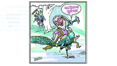 प्रधानसेवक मा. श्री. नमोजीभाई घराच्या हिरवळीवर मोरांना दाणे टाकत आहेत. मा. नमोजीभाईंच्या बागेत खूप मोर आहेत. आपल्या अंगणात फार्तर कोंबड्या असतात. त्यांच्या बागेत मोर!! आज तर नमोजीभाईंचा हॅप्पी बर्थडे असल्याने समस्त मोर खुशीत डान्स पार्टी करीत आहेत. दाणेबिणे खात आहेत. नमोजीभाईंच्या हातातले दाणे संपले की शेजारी बसलेले मा. मोटाभाई दाण्यांचा पुरवठा करीत आहेत...दोन तीन मोर उगीचच पिसारा फुलवून नाचून दाखवतात. ‘‘वाह भाई वाह! मजा आवी गया!’’ अशी दाद देत नमोजीभाई खुश होऊन त्यांना आणखी थोडे दाणे (बिदागी म्हणून) देतात...अब आगे.