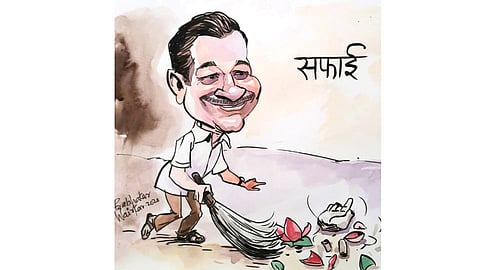 ‘‘कचरा!’’ दारात उभा असलेला एक टोपीवाला गरीब आवाजात उत्तर देतो. त्याच्या हातात झाडू आहे. दुसऱ्या हातात बादली आहे. सदर गृहस्थ हा ‘इसम’ वर्गात मोडतो, हे दिसतेच आहे. नमोजीभाई त्याला पाहून खूश होतात. स्वच्छ भारत अभियानातला कुणी निष्ठावंत कार्यकर्ता असावा, असे वाटून ते थोडेसे सद्गदितदेखील होतात.
