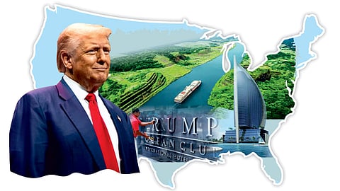 ८२ किमी लांबीचा पनामा कालवा पनामा या देशाच्या मालकीचा आहे. या कालव्यामुळे दक्षिण अमेरिकेला वळसा घालावा लागत नाही. डोनाल्ड ट्रम्प यांचं म्हणणं आहे, की कॅनडा, चीन, मेक्सिको, भारत इत्यादी देश त्यांचा माल अमेरिकेत विकून अमेरिकेला लुबाडत आहेत. तसंच पनामा कालव्यातून जाणाऱ्या अमेरिकन बोटींकडून अव्वाच्या सव्वा वाहतूक शुल्क घेऊन पनामा अमेरिकेचं आर्थिक शोषण करीत आहे. पनामाने शुल्क कमी करावं, न कमी केल्यास पनामाचा कालवा (म्हणजे देशच) अमेरिका लष्करी बळ वापरून ताब्यात घेईल.
