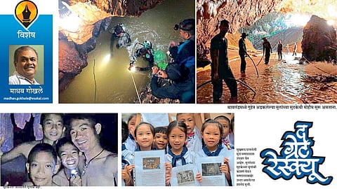 बॅंकॉकच्या उत्तरेला असलेल्या "थाम लुआंग नांग नोन' या गुहांच्या जंजाळात तब्बल सोळा दिवस अडकलेल्या फुटबॉल ऍकॅडमीच्या बारा मुलांच्या आणि त्यांच्या प्रशिक्षकाच्या सुटकेकडं अनेकांचे डोळे लागले होते. "थाम लुआंग नांग नोन रेस्क्यू ऑपरेशन' या नावानं ओळखल्या गेलेल्या थायलंडमधल्या या मोहिमेवर गेल्या मंगळवारी पडदा पडला. जूनच्या 23-24 तारखेला सुरू झालेला हा संघर्ष अनेक अर्थांनी वेगळा ठरला. पावणे चारशे तासांपेक्षा अधिक काळ ही सुटकामोहीम सुरू होती.