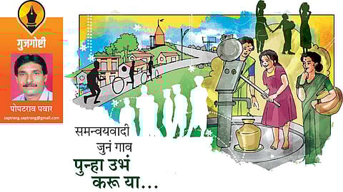 पूर्वी गावात नेतृत्वामुळे घरापर्यंत सहज मिळणारे लाभ तालुकास्तरावर आणि जिल्हास्तरावर गेले आणि त्यातून एक नवी दलालव्यवस्था निर्माण झाली. यातूनच गावाची एकसंधतेनं निर्णय घेण्याची क्षमता अविश्वासानं पोखरून निघाली. गावाबाहेरचा हस्तक्षेप वाढला. त्यामुळे सामुदायिक लाभ बाजूला ठेवून वैयक्तिक लाभ घेतला जाऊ लागला. वैयक्तिकरीत्या निर्णय घेतले जाऊ लागले. एखाद्या गावकारभाऱ्यानं निवडणुकांमध्ये एखाद्या पक्षाला मत देण्याचा आग्रह धरला, तर लोक वैयक्तिक लाभाची शंका घेऊन त्याच्याकडं संशयानं पाहू लागले. त्यामुळेच दारू, पैसा आणि वैयक्तिक लाभ हेच आता विकासाचं समीकरण झालेलं आहे आणि गावं गुलामगिरीकडं झुकत चालली आहेत. त्यामुळेच आता हे चित्र जर बदलायचं असेल, तर पूर्वीसारखं नैसर्गिक व कौटुंबिक आपत्तीला धावून मदतीला येणारं जुनं गाव पुन्हा उभं करण्याची गरज आहे.