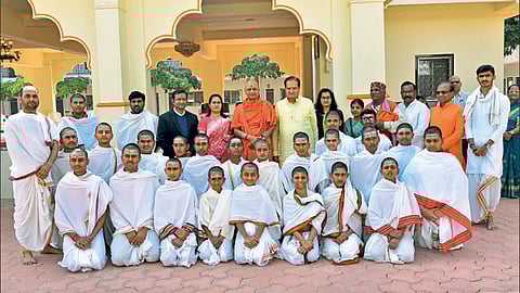 यजुर्वेद, ऋग्वेद, अथर्ववेद आणि सामवेद असे चार वेद आहेत. या चार वेदांमध्ये सात वर्षांच्या काळात यजुर्वेद हा पूर्ण होतो, ज्यामध्ये पूजा आणि पांडित्य पूर्णतः शिकवलं जातं. आता आमची पहिली तुकडी बाहेर पडेल.’’ आम्ही बोलत असताना सचिन यांची मुलगी कृतिका त्या ठिकाणी आली. एक श्लोक समोर ठेवत, तिच्या वडिलांना विचारत होती, या श्लोकाचा अर्थ काय आहे? त्यांनी त्याचा अर्थ सांगितला आणि कृतिका पुन्हा ते बाकीचे श्लोक वाचण्यामध्ये मग्न झाली.