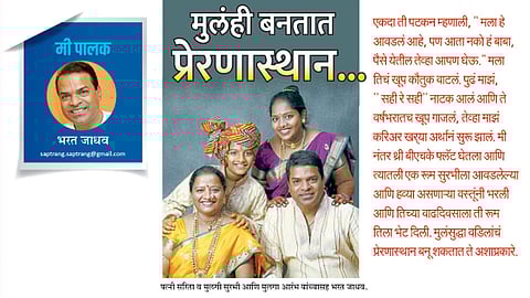 असाच एक गेल्यावर्षीचा प्रसंग सांगतो. मी अमेरिकेत गेलो होतो. तिथून मी दोघा मुलांसाठी अॕपलचे लेटेस्ट फोन आणले. सुरभीला गरज होती म्हणून तिनं तो घेतला. पण आरंभ म्हणाला, "बाबा मला आत्ता याची गरज नाही, मला नको. तुम्ही बाहेर जात असता, तुम्हाला या फोनची गरज आहे, तुम्ही वापरा." दोन्ही मुलांचा हा समजूतदारपणा संस्कारांतूनच आला आहे, असंच मी म्हणेन. यामध्ये पालकांचीच भूमिका महत्त्वाची असते. केवळ जन्म देणं म्हणजे पालकत्व नाही, तर त्यांचं योग्य प्रकारे संगोपन करणं, पालन-पोषण करणं आणि त्यांना एक सक्षम व चांगला माणूस बनवणं, हे पालकत्व आहे.