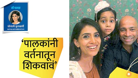 मूल जन्माला आलं, की पालकांना वाटतं की आपण आपल्या मुलांना अमुक गोष्टी शिकवाव्यात; पण त्यांना काही शिकवण्यापेक्षा मुलांसमोर आपण चांगलं जगलं पाहिजे. मुलांनी जसं वागावं हे पालकांना वाटत असतं; तसंच त्यांनी स्वतः आधी वागावं. मुलांना आदर्शाचे वेगळे नियम आणि स्वतःला वेगळे असं केलं तर ते चुकीचं ठरेल. आई-बाबा स्वतः टीव्हीसमोर तासन्तास बसत असेल आणि तू एकच तास टीव्ही बघायचा असा नियम मुलांना घातला, तर मुलं ते ऐकतील का? आपण असे नियम घालणारे कोण? घरात कावेरी माझी लाईफस्टाईल बघते, तिला माहीत आहे, की मला खरंच वेळ नसतो. मला एखादा सिनेमा अगदी बघायचाच असेल, तर मी तो वेळ काढून बघते. थोडक्यात काय तर आपण मुलांना जे सांगतो आणि आपण जे वागतो त्यात सारखेपणा असला पाहिजे. म्हणून माझा प्रयत्न असतो, की जास्त उपदेशाचे डोस पाजायचे नाहीत. जे आहे ते आपल्या वर्तनातून मुलांना दिसू दे.