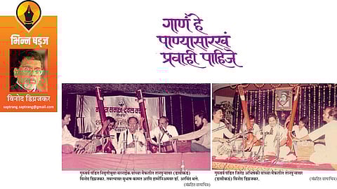 सन 1970 मध्ये कोल्हापूरला "देवल क्लब'मध्ये अभिषेकीबुवांची एक मैफल मी ऐकली. त्यांनी "जोगकंस' गायला होता. मी या मैफलीनं खूपच प्रभावित झालो. बुवांकडं आपण गाणं शिकायचं, हे मी मनात निश्चित केलं; परंतु माझ्या इंजिनिअरिंगच्या शिक्षणामुळं मला ते त्या वेळी जमलं नाही. सन 1960 पासून बुवा त्यांचे गुरू पंडित जगन्नाथबुवा पुरोहित (गुणीदास) यांच्याकडं कोल्हापूरला येत असत. नानांचा आणि बुवांचा दृढ ऋणानुबंध होता. बुवांकडं मी गाणं शिकण्याचा योग सन 1985 मध्ये जुळून आला. अभिषेकीबुवा कोल्हापुरात उस्ताद अजीजुद्दीन खॉंसाहेब ऊर्फ बाबांकडं जयपूर घराण्याच्या दुर्मिळ बंदिशी घेण्यासाठी यायचे (बाबा म्हणजे उस्ताद अल्लादिया खॉंसाहेबांचे नातू आणि उस्ताद भुर्जी खॉंसाहेबांचे चिरंजीव). या वेळी अभिषेकीबुवा गंगावेस इथल्या आमच्या घरात राहायचे. बुवा सायंकाळी मोकळे झाल्यावर मी त्यांच्याकडं गाणं शिकायचो. बुवांनी मला अनेक बंदिशींबरोबरच "जोग' तसंच आग्रा घराण्याचा "खंबावती' राग शिकवला. बुवांच्या गाण्यात भावनाप्रधानता होती. सन 2004 नंतर मी बाबांकडूनदेखील मार्गदर्शन घेतलं. त्यांनी मला "संखुरन', "विक्रमभैरव', "शंकर अरन', "बरारी' यांसारखे अनेक राग शिकवले.