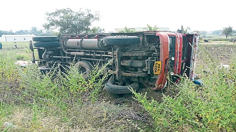 ट्रकमध्ये आवश्यक वस्तूंनी भरलेल्या साहित्यावरच सर्व जण गाढ झोपले होते. हा ट्रक लोधवडेजवळ वळण रस्त्यावर पलटी झाला. त्या वेळी ट्रकमधील साहित्यासह प्रवासी मजूर जोरात बाहेर फेकले गेले. त्यात जबर मार लागल्याने शोभा बनसड या जागीच ठार झाल्या.