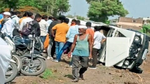 याबाबत लोणंद पोलिसांकडून मिळालेली माहिती अशी, बार्शी ( जि. सोलापूर) येथील नुकतेच लग्न झालेले नवरदेव सुखदेव रवींद्र वाघमोडे ( वय २६) हे आपल्या लग्नानंतर देवदर्शनासाठी जीपगाडीतून नातेवाईकांसमवेत जेजुरी येथून लोणंद-फलटण रस्त्यावरून फलटण तालुक्यातील धुळदेव या ठिकाणी देवदर्शनासाठी निघाले असताना सायंकाळी पाच वाजण्याच्या सुमारास काळजजवळ आल्यानंतर चालकाचा वाहनावरील ताबा सुटल्याने गाडी पलटी होऊन हा अपघात झाला. त्यामध्ये नवरदेव सुखदेव हा गंभीर जखमी झाला.