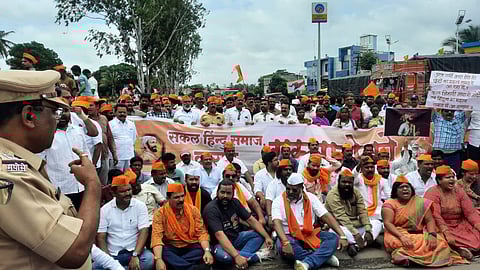 कऱ्हाड : पुण्यातील हडपसर येथे छत्रपती शिवाजी महाराज (Chhatrapati Shivaji Maharaj) यांच्या स्मारकाची विकृत मनोवृत्तीच्या माथेफिरुने विटंबना केल्याची घटना उघडकीस आली. या घटनेच्या निषेधार्थ हिंदू समाजाच्या (Hindu Community) वतीने पुणे-बंगळुरु महामार्गावरील (Pune-Bangalore Highway) कोल्हापूर नाक्यावर रास्ता रोको आंदोलन केले. त्यामुळे महामार्गावरील वाहतूक विस्कळीत झाली. काही काळानंतर तहसीलदारांना निवेदन देऊन रास्तारोको थांबवण्यात आला.
