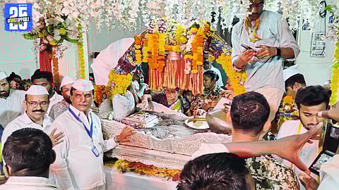 कोळकी : श्री क्षेत्र पंढरपूरहून आळंदीकडे निघालेला श्री संत ज्ञानेश्वर महाराजांचा पालखी सोहळा आज सायंकाळी सहा वाजता फलटण येथील रविवार पेठेतील श्री संत नामदेव महाराज शिंपी समाजाच्या श्री विठ्ठल मंदिरामध्ये विसावला. सोहळ्याचे देवस्थान ट्रस्टचे अध्यक्ष राजेश हेंद्रे यांनी स्वागत केले, तसेच महाराजांच्या पादुकांची सपत्निक आरती केली. या वेळी फलटण शहरासह तालुक्यातील भाविकांनी पालखीचे दर्शन घेतले.