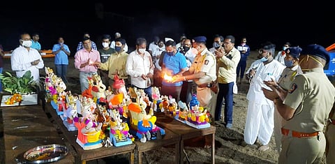 त्याचा पहिला प्रयोग आज रात्री पोलिस उपाधिक्षक रणजीत पाटील, वरिष्ठ पोलीस निरीक्षक बी. आर. पाटील, पालिकेचे मुख्याधिकारी रमाकांत डाके, जनशक्तीचे गटनेते राजेंद्र यादव, आरोग्य सभापती विजय वाटेगावकर, नगरसेवक जयंत बेडेकर, अख्तर आंबेकरी, मुख्य नगर अभियंता एम. एच. पाटील, सहायक पोलिस निरीक्षक सरोजिनी पाटील, पोलिस उपनिरीक्षक बी. एस. पाटील यांच्यासह अधिकारी कर्मचारी, अग्निशमन दलाचे कर्मचारी यांच्या उपस्थितीत दीड दिवसांच्या गणेशमुर्ती विधीवत पुजन करुन विसर्जन करण्यात आले. दरम्यान यापुढील मुर्तींचे विसर्जन तराफ्यावरुनच करण्यात येणार आहे. त्यामुळे चांगली सोय होणार आहे.