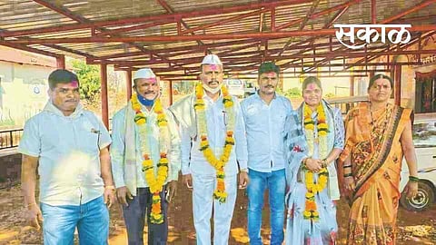 या ग्रुप ग्रामपंचायतीच्या सरपंच, उपसरपंचपदाची निवडणूक झाली. त्यामध्ये पांडुरंग नारायण शेलार यांची धाकटी सून सुरेखा दिलीप शेलार यांची सरपंच आणि पांडुरंग नारायण शेलार यांचे ज्येष्ठ चिरंजीव रवींद्र पांडुरंग शेलार उपसरपंचपदी बिनविरोध निवड झाली. मोठा मुलगा उपसरपंच, तर धाकटी सून सरपंच असा दुहेरी योग पांडुरंग शेलार यांच्या घरात आला. निवडणूक निर्णय अधिकारी विजय शिंदे यांनी या निवडी घोषित केल्या. त्याप्रसंगी ग्रामसेवक प्रशांत शिंगटे, नूतन सदस्य संतोष शेलार, माजी सरपंच तानाजी शेलार, निवृत्त पोलिस पाटील आप्पाजी शेलार, ग्रामपंचायत कर्मचारी शिवराम शेलार उपस्थित होते. सर्वांना एकत्रित घेऊन विकास करून दाखविण्याची उपसरपंच रवींद्र शेलार यांनी ग्वाही दिली.