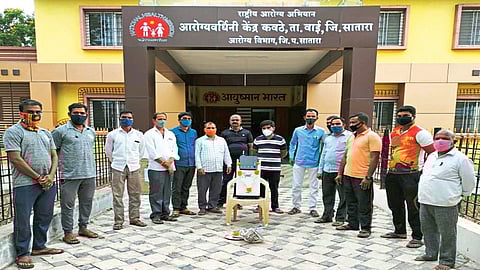 प्राथमिक आरोग्य केंद्रातील आरोग्य अधिकारी डॉ. ठोंबरे यांनी कवठे परिसरात कोरोना रुग्णांची संख्या झपाट्याने वाढत आहे. अत्यवस्थ रुग्णांना वेळेत बेड उपलब्ध होत नाहीत. या कोरोना संसर्गात ऑक्सिजनशिवाय कोणाला जीव गमवावा लागू नये, यासाठी ऑक्सिजन मशिन उपलब्ध करण्याबाबत केलेल्या आवाहनास सकारात्मक प्रतिसाद देत कवठे ग्रामस्थ व रणमर्द मित्र मंडळातील कार्यकर्त्यांनी स्वेच्छेने लोकवर्गणी उभारून प्राथमिक आरोग्य केंद्राला ऑक्सिजन मशिन भेट दिले.