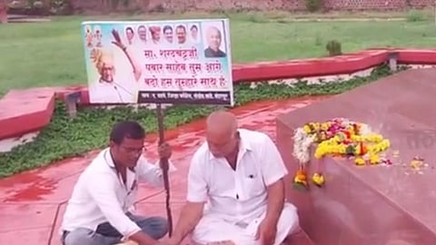 आणि आम्ही ज्येष्ठ नेते शरद पवार यांच्यासोबत आहोत, असे दाखवले. शरद पवार यांना पाठिंबा देण्यासाठी पंढरपूरहून पहाटेच हे दोन राष्ट्रवादीचे कट्टर कार्यकर्ते कराड येथे हजर झाले आहेत. त्यांनी ज्येष्ठ नेते यशवंतराव चव्हाण यांच्या समाधीस्थळी अभिवादन करून त्यांनी शरद पवार यांना ताकद द्यावी, अशी प्रार्थनाही केली.