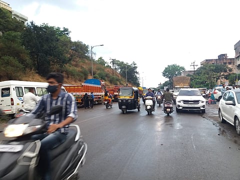 अवजड वाहने, डंपर अशा वाहनांची रस्त्यांवर रहदारी असते. त्यातच वाहनांची अनाधिकृत पार्किंग केली जात असल्याने या परिसरातून वाहन चालवणे जिकीरीचे झाले आहे. शनिवार-रविवारी तर वाहतूक कोंडी नित्याचीच झाली आहे. मात्र, रहदारीच्या तुलनेने रस्त्याची क्षमता अपुरी पडत आहे. त्याचबरोबर, रस्त्यावर मोठ्या प्रमाणांत खड्डे पडले असून रस्त्याच्या दुतर्फा कचरा-राडारोडा टाकला जात असल्याचे दिसून येत आहे. रस्त्याची दूरवस्था झाली असून पुढे स्वागत हॉटेलजवळ रस्त्याच्या बाजूला खडी पडल्याचे दिसत आहे. त्यामुळेही अपघात होत आहेत.