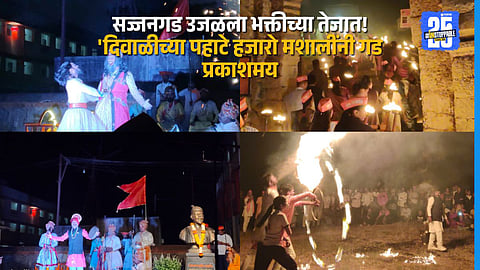 Sajjangad Fort lit up with thousands of torches at dawn, as devotees celebrate Diwali with faith and reverence.