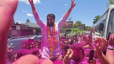 शिवेंद्रराजेंना हजारो कार्यकर्त्यांनी खांद्यावर घेत गुलालाची उधळण करत जणू विधानसभेचा माहोलच तयार केला.