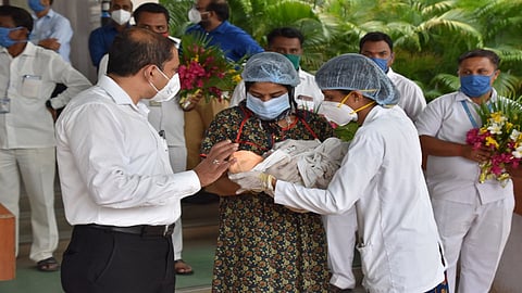 दरम्यान, संबंधित महिलेचा उपचारादरम्यान घशातील स्त्रावाचा नमुना तपासणीसाठी पाठवल्यावर तो निगेटिव्ह आला. येथील कृष्णा व सह्याद्री हॉस्पिटलमधून कोरोनामुक्त झालेल्या 35 रूग्णांना दिलेल्या डिस्चार्जमध्ये म्हासोली येथील त्या महिलेचाही समावेश आहे. यावेळी कृष्णा रुग्णालयाच्या प्रांगणात कोरोनामुक्त झालेल्यांचा सत्कार करण्यात आला. त्यावेळी संबंधित महिलेचा सत्कारापेक्षा जन्म दिलेल्या बाळाला पाहून गहिवरून आले होते. जन्म झालेल्या बाळाला पाच दिवसांनी दूरवलेले लेकरू आईने कुशीत घेताच सर्वांचे मन हेलावून गेले.