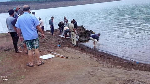 भिलार (जि. सातारा) : महू धरणात (mahu dam) सोमवारी दुपारी आजोबांबरोबर (grandfather) गुरे चारण्यासाठी गेलेला प्रणव संतोष गोळे (वय ११) हा मुलगा पोहण्यासाठी पाण्यात उतरला आणि पाण्यात बुडाला होता. गेले दोन दिवसांपासून ग्रामस्थ व महाबळेश्वर ट्रेकर्सचे जवान प्रणवचा शोध घेत होते. पोलिस धरणावर ठिय्या मांडून होते. परंतु प्रणवच्या ठावठिकाणा लागत नव्हता. आज (बुधवारी) प्रणवचा मृतदेह पाण्यावर तरंगताना दिसला. याबाबतची माहिती करहर पोलिस दुरक्षेत्राचे हवालदार डी. जी.शिंदे यांनी दिली. (satara-marathi-news-drown-child-dead-body-found-mahu-dam-mahableshwar-trekkers)