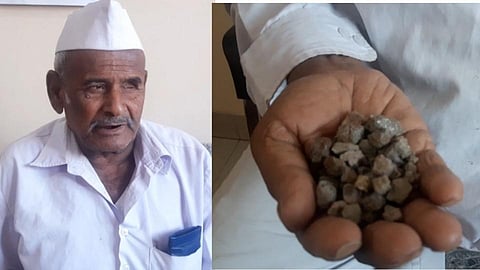 फलटण शहर (जि. सातारा) : पोटदुखी पासून वाचण्यासाठी आदर्की खुर्द (ता. फलटण) येथील ७९ वर्षीय रामदास बोडके यांनी चक्क मुरुमाचे खडे खाण्याचा रामबाण उपाय शोधला असून खडे खाण्याची ही मात्रा त्यांना लागूही पडली आहे. पोटदुखीचा आजार थांबला असला, तरी गेली ३१ वर्षे बोडके हे दररोज नियमितपणे पावशेर खडे खात आहेत, त्यामुळे बोडके हे या पंचक्रोशीत चर्चेचा केंद्रबिंदू ठरले आहेत.