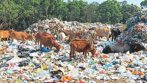 शहरापासून काही किलोमीटर अंतरावर पालिकेचा कचरा डेपो आहे. पालिकेकडून ओला व सुका कचरा वेगळा गोळा केला जातो. परंतु, टाकताना तो एकाच जागेवर टाकला जातो. ओल्या अथवा सुक्या अशा कोणत्याही प्रकारच्या कचऱ्यावर प्रक्रिया केली जात नाही. रोज कित्येक टन जमा होणारा कचरा डेपोवर गोळा केला जातो. या ठिकाणी टाकण्यात येणारा ओला कचरा हा जंगलातील प्राण्यांचा पशुपक्ष्यांचे तसेच या परिसरातील पाळीव गाईंचे खाद्य बनले आहे. हा कचरा खाऊन अनेक गाईंचा मृत्यू झाला आहे. अशा घटना वरचेवर येथे घडत असतात. आजही येथे मोठ्या प्रमाणावर मोकाट गाई या ठिकाणी कचरा खाण्यासाठी गोळा होतात. त्यातील अनेक गाईंना विविध व्याधींनी पछाडलेले आहे तर, अनेक गाई या मृत्यूशी झुंज देत आहेत.