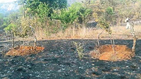 याबाबत अधिक माहिती अशी की, लामज हे छोटेसे गाव असून, या गावातील प्रदीप कदम या युवकाच्या शेतात पाच वर्षांची रत्ना आंब्याची 150 झाडे, चार वर्षांची हापूस आंबा 50 झाडे आहेत. तसेच चिकू, काजू, खैर, नारळ, साई सरबत्ती निंबू प्रत्येकी दहा अशा सुमारे 300 फळझाडांची लागवड केली आहे. त्यांनी ही झाडे आपल्या मुलाप्रमाणे जपली होती. परंतु, अज्ञाताने लावलेल्या वणव्यात ही वनसंपदा आगीच्या भक्ष्यस्थानी पडल्याने श्री. कदम यांचे लाखो रुपयांचे नुकसान झाल्याने त्यांच्या डोळ्यात अक्षरशः पाणी आले आहे.