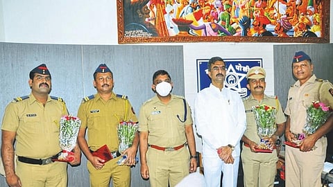 सातारा : पुणे येथील कुख्यात गुंड गजा मारणेला मेढा परिसरात अटक केल्याप्रकरणी आज ग्रामीण गृह राज्यमंत्री शंभूराज देसाई यांनी मेढा पोलिस ठाण्याचे सहायक निरीक्षक अमोल माने आणि कर्मचाऱ्यांचा सत्कार केला. सत्कारादरम्यान कारवाईत सहभागी झालेल्या अधिकारी, कर्मचाऱ्यांना विशेष शौर्य पदक देण्यासाठीचा प्रस्ताव महासंचालकांकडे पाठविण्याच्या सूचना पोलिस अधीक्षक अजयकुमार बन्सल यांना केल्या.