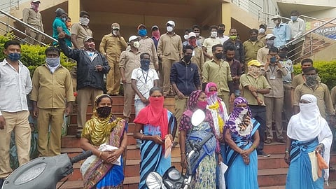 या सूचना करूनही पालिका प्रशासनाने पवार यांच्याविरोधात कोणतीही कारवाई केलेली नाही. यामुळे पालिकेच्या अधिकारी, कर्मचाऱ्यांनी आज सकाळी पालिकेच्या प्रवेशव्दारावर जमत सिद्धी पवार यांचा निषेध केला. निषेध नोंदवत असतानाच त्यांनी पवार यांच्यावर कारवाई करावी, अशी मागणी करत अधिकारी, कर्मचाऱ्यांनी कामबंद आंदोलनाची घोषणा केली.