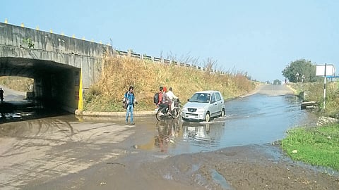 येथील चिकाटे पेट्रोल पंपाशेजारी रायगावमधून येण्यासाठी असणाऱ्या भुयारी मार्गाखाली पावसाळ्यात पावसाचे सुमारे दहा फूट पाणी साचून रस्ता बंद होतो, तर अनेकदा वाहने पाण्यात अडकून पडतात. पावसाचे पाणी आहे म्हणून कोण काही बोलत नव्हते. मात्र, तशीच परिस्थिती हिवाळा व उन्हाळ्यातही दिसून येत आहे. बारमाही पाणी असल्याने येथे खूप धोकादायक पद्धतीने ये- जा करावी लगते. त्यातून अपघात घडले आहेत. पथदिवे नसल्याने अनेक छोटी वाहने अंदाज न आल्याने या पाण्यात अडकून पडत आहेत.