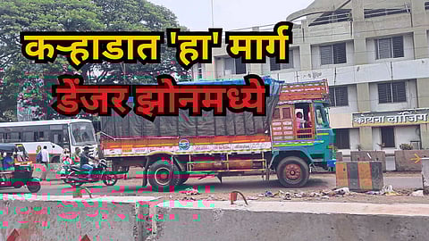कऱ्हाड : कोल्हापूरकडून शहरात येण्यासाठी पुणे-बंगळूर महामार्गावरून (Pune-Bangalore Highway) कोल्हापूर नाक्याचा (Kolhapur Naka) मार्ग होता. त्यामुळे अपघातांची संख्या वाढली होती. त्याचा विचार करून महामार्ग विभागाकडून सध्या तेथील उड्डाणपूल पाडून नवीन उड्डाणपुलाचे काम सुरू करण्यात आले आहे. त्यामुळे पुणे- बंगळूर महामार्गावरून शहरात येण्यासाठी कोल्हापूर नाक्यावरून शॉर्टकट मार्ग देण्यात आला आहे. त्यातून फक्त सायकल, चारचाकी, तीनचाकी आणि दुचाकींनाच परवानगी देण्यात आली आहे.
