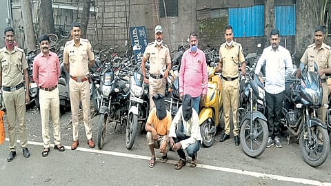महिन्यापूर्वी शहर हद्दीतून चार, उंब्रज येथून दोन व कोळसेवाडी (जि. ठाणे) येथून दुचाकी चोरीस गेल्या होत्या. त्या अनुषंगाने शोध सुरू होती. त्यावेळी हवालदार मारूती लाटणे, विनोद माने, तानाजी शिंदे, जयसिंग राजगे यांना उंब्रजचे दोघे चोरी करत असल्याची माहिती मिळाली. त्यानुसार उंब्रज येथे जाऊन पोलिसांनी दोघांना ताब्यात घेतले. त्यांची नावे ज्ञानेश चव्हाण व मनोज विभुते असल्याची खात्री केली. त्यांच्याकडे चौकशी केली. त्यावेळी शहरासह उंब्रज व ठाणे येथून सात दुचाकी चोरल्याची कबुली दिली. दोन्ही कारवाया पोलीस उपाधिक्षक डॉ. रणजीत पाटील, वरिष्ठ पोलीस निरीक्षक बी. आर. पाटील यांच्या नेतृत्वाखाली सहायक पोलीस निरीक्षक विजय गोडसे, राजेंद्र पुजारी, हवालदार सतीश जाधव, नितीन येळवे, जयसिंग राजगे, संजय जाधव, सचिन साळुंखे, मारूती लाटणे, विनोद माने, प्रफुल्ल गाडे, तानाजी शिंदे, आनंदा जाधव यांनी केली.