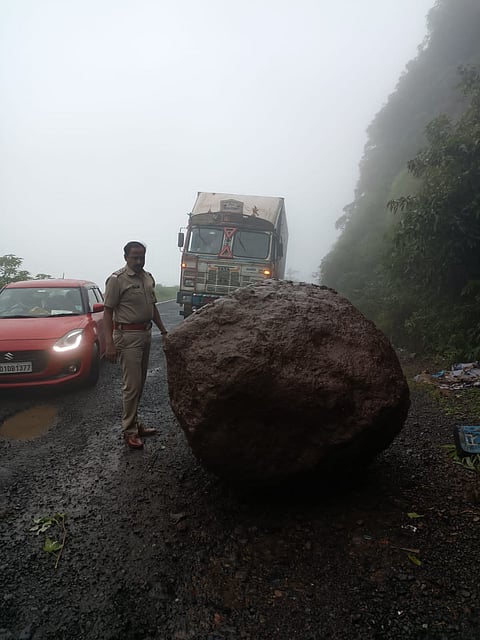 जेथे दगड कोसळला होता तेथुन एकेरी वाहतुक सुरू होती. दगड कोसळल्याची माहीती वैभववाडी पोलीसांना मिळाल्यानंतर पोलीस निरीक्षक अतुल जाधव, पोलीस उपनिरीक्षक प्रवीण देसाई, पोलीस हवालदार मारूती साखरे आदी घटनास्थळी पोहोचले. दगड मोठा असल्यामुळे पोलीसांनी जेसीबी पाचारण केले. तासाभरानंतर जेसीबी घाटात पोहोचले. त्यानंतर घाटरस्त्यावर कोसळलेला दगड हटविण्यात आला. दीड तासानंतर घाटमार्गावरील वाहतुक पुर्ववत झाली.