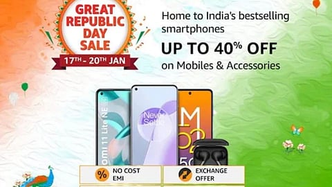 amazon great republic day sale 2021 : Amazon ग्रेट रिपब्लिक डे सेल 2022 मध्ये अॅमेझॉन विविध स्मार्टफोन्सवर 40 टक्क्यांपर्यंत सूट देत आहे. सेल इव्हेंट प्राइम मेंबर्ससाठी आज, 16 जानेवारीपासून सुरू झाला, तर नॉन-प्राइम ग्राहक 17 जानेवारीपासून लाभ घेऊ शकतात. रिपब्लिक डे सेल 2022 20 जानेवारीपर्यंत चालेल, ग्राहक नो कॉस्ट EMI, एक्सचेंज ऑफर, Amazon कूपन आणि मोफत स्क्रीन रिप्लेसमेंट सारख्या ऑफर्सचा देखील लाभ घेऊ शकतात.