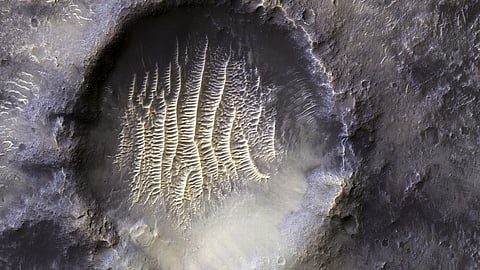 नासा (NASA) नेहमीच आंतराळातील विविध घडामोडींची अपडेट देत असते. आंतराळातील फोटो जगभरातील नागरिकांपर्यंत पोहोचवत असते. अशातच नासाने मंगळ ग्रहावरील एका क्रेटर (Mars crater) चा एक फोटो आपल्या इन्स्टाग्राम अकाऊंटवर शेअर केलाय. सध्या हा फोटो चर्चेचा विषय ठरलाय. (nasa shared a photo of crater of Mars on instagram)