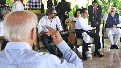 यातील एका फोटोमध्ये पंतप्रधान मोदी, राष्ट्राध्यक्ष बिडेन आणि त्यांचे इंडोनेशियन नते जोको विडोडो कॅमेऱ्याकडे हसताना दिसत आहेत. दुसर्या फोटोमध्ये पंतप्रधान राष्ट्राध्यक्ष बिडेन आणि फ्रान्सचे अध्यक्ष इमॅन्युएल मॅक्रॉन यांच्याशी बोलत आहेत.