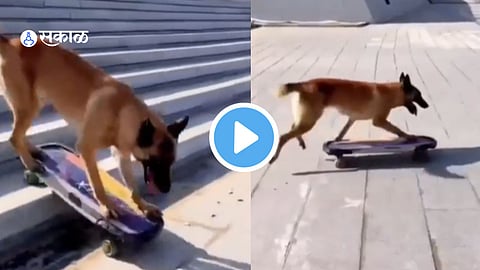 व्हायरल होत असलेल्या व्हिडिओमध्ये एक कुत्रा स्केटिंग खेळत आहे. तो स्केटबोर्ड पायऱ्यावरून दातात धरून वर घेऊन जाताना दिसत आहे.