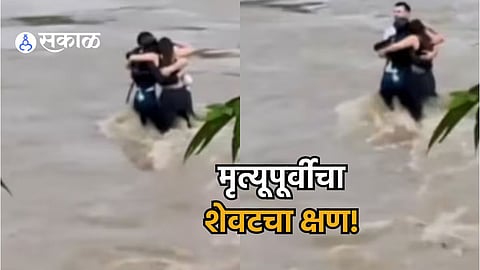 नवी दिल्ली- काही मित्र असे असतात जे शेवटच्या श्वासापर्यंत साथ सोडत नाहीत. अशाच प्रकारचा एक व्हिडिओ सोशल मीडियावर पाहायला मिळत आहे. नदीमध्ये आलेल्या पुरापासून वाचण्यासाठी तीन मित्रांनी एकमेकांना घट्ट मिठी मारल्याचं दिसत आहे. तीन मित्र सोबत होते. त्यावेळी अचानक नदीचा प्रवाह वाढल्याने ते संकटात सापडले.