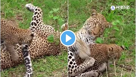 व्हायरल होत असलेल्या व्हिडिओमध्ये बिबट्याचं गोंडस पिल्लू आपल्या आईची शेपटी दातात धरून चावतो. त्यानंतर आई त्याला दोन्ही पायामध्ये धरून त्याला मिठी मारून कुरवाळू लागते. झोपलेल्या आईच्या अंगावर पिल्लू खेळतानाचे हे मनमोहक दृश्य पाहून आपल्याला समाधान वाटेल.